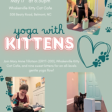 Join Mary Anne Tillotson (ERYT-200) at Whiskerville Kitty Cat Cafe for an all-levels, gentle yoga flow, surrounded by our 9 adoptable foster kitties! The kitties are ready to help you relax, making it the purrfect way to start your week with calm vibes and kitty cuddles before the Monday grind! You can register for this event through the Event Brite like provided. Spots are limited, reserve now! https://www.eventbrite.com/e/gentle-yoga-with-kittens-at-whiskerville-cat-cafe-tickets-1986918725394